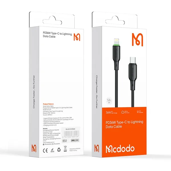 کابل تایپ سی به لایتنینگ مک دودو مدل CA-4761 طول 1.2 مترلوازم جانبی